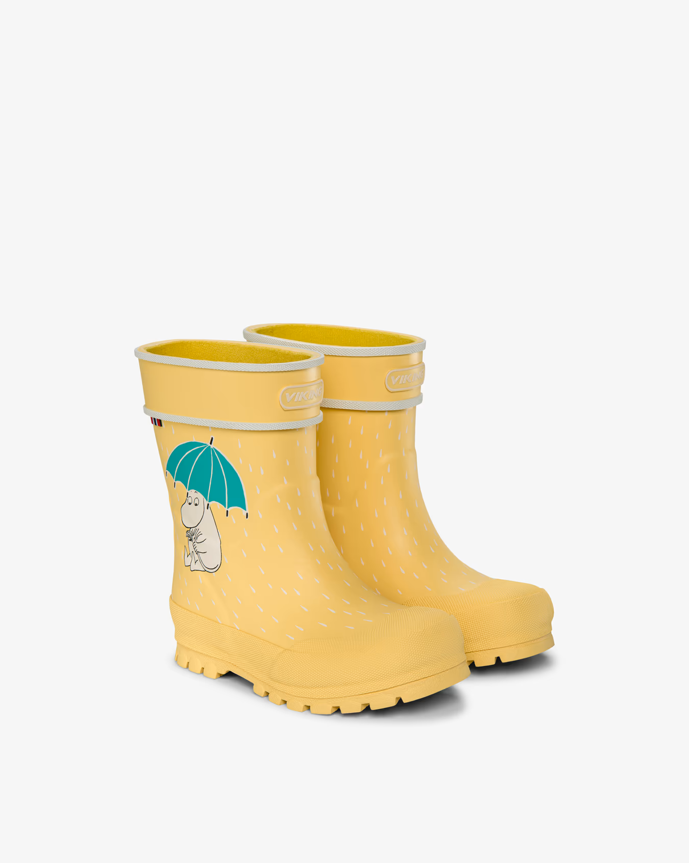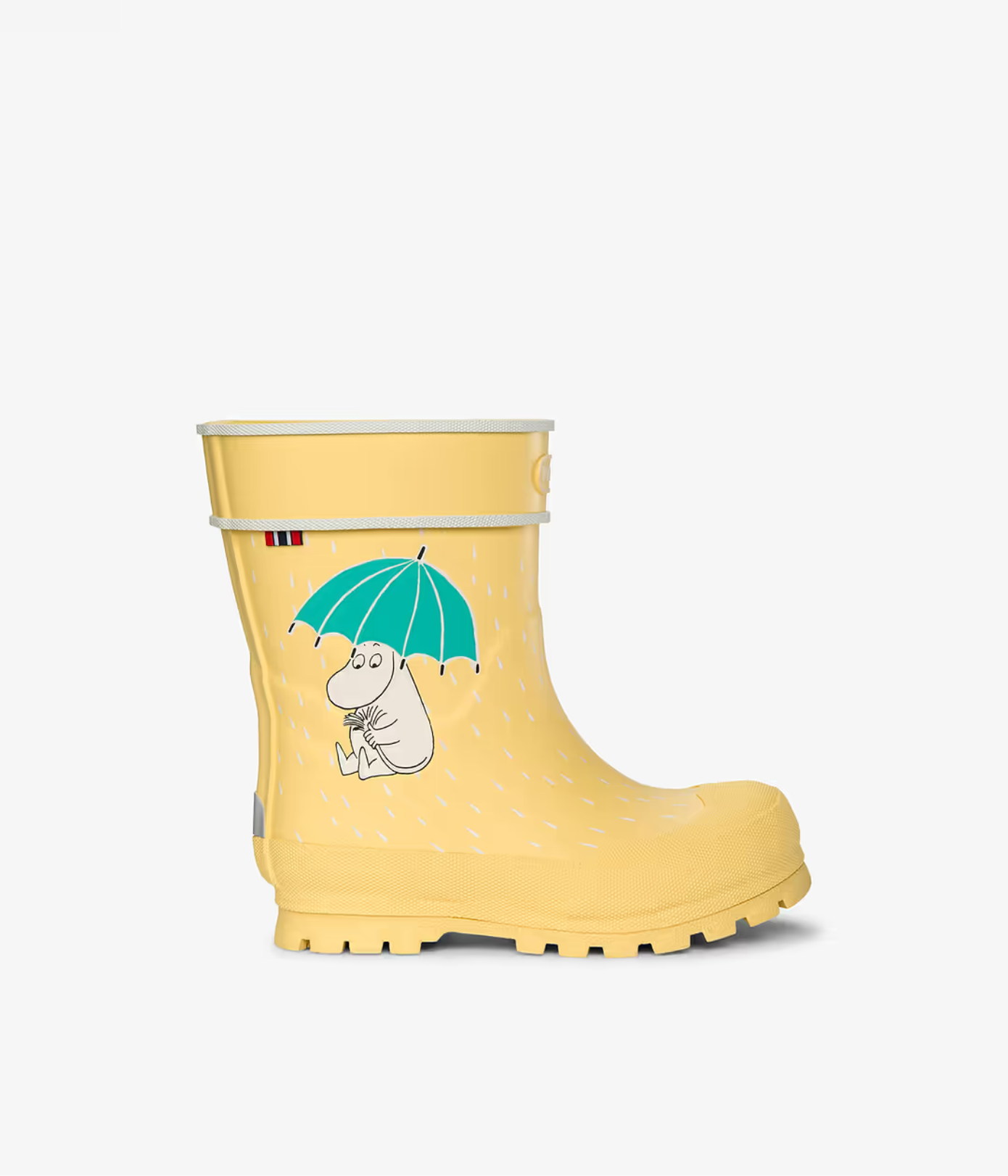 • Veganski in brez PVC-ja ter ročno izdelani iz naravnega kavčuka, na voljo v dveh pastelnih odtenkih z Muminom, ki pleše v dežnih kapljah!
