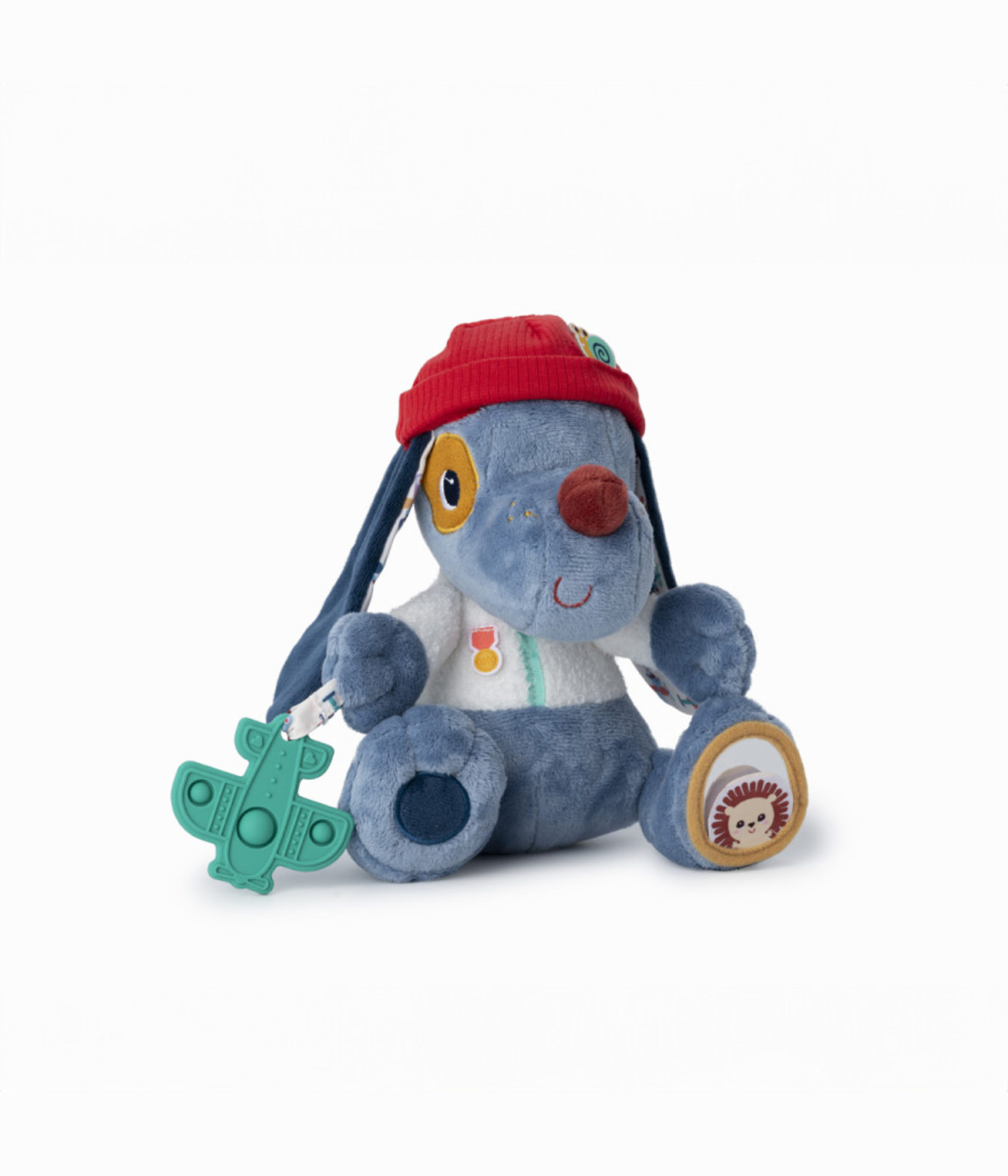 - Psiček Jules ponuja številne dejavnosti za prebujanje čutov malčkov. Opremljen je z grizalom in igro v obliki pokajočega letala, zato je ta spremljevalec poln presenečenj.
