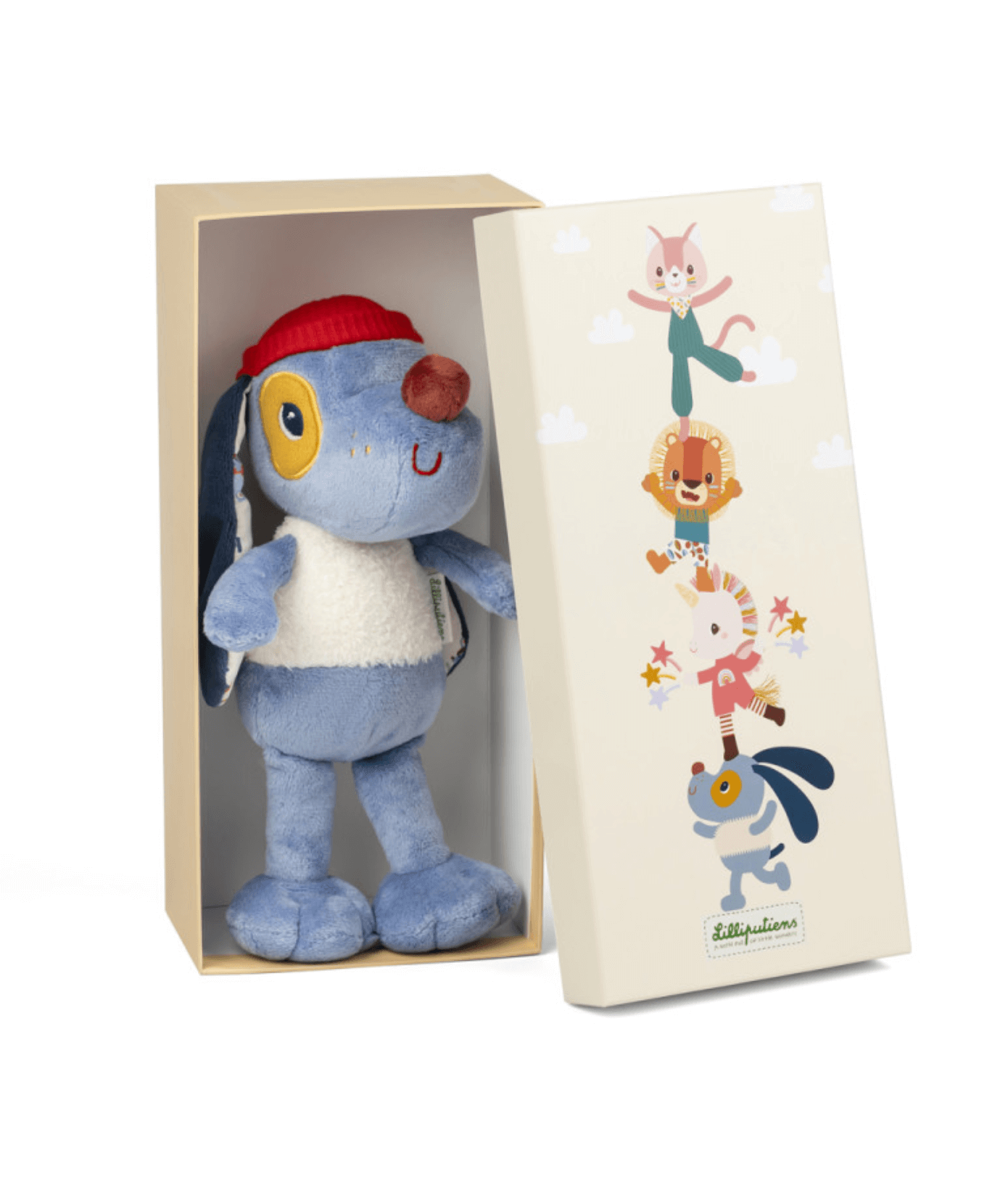 - Ta ljubki plišasti kuža je primeren za otroke in dojenčke od 3 mesecev starosti. V svoji ljubki ilustrirani škatli je idealno darilo za rojstvo, rojstni dan ali katero koli drugo priložnost. Igrača je sestavljena iz različnih tekstur, ki so prijetne na dotik in hkrati spodbujajo dojenčka k raziskovanju: utori na rdeči kapici, dvignjena vezenina na majhnem obrazu, super puhast bel brezrokavnik … Kar zadeva njegova ušesa, so v notranjosti okrašena s čudovitim potiskom z letali. Zakaj? Ker je naš Jules izjemen pilotski pes! Obožuje tudi DIY, vrtnarjenje in seveda crkljanje. Julesova dolga ušesa in velike tačke so podaljški, ki jih malčki zlahka primejo in crkljajo. To je tudi vzrok za nerodnost našega dragega prijatelja, zaradi česar je še bolj ljubek. Modri odtenki te plišaste igrače Lilliputiens jo naredijo tako pomirjujočo! Igrača meri 27 cm, kar je idealna velikost za največji odmerek crkljanja za malčke. Izdelana iz poliestra in jo je mogoče prati v pralnem stroju pri 30° za enostavno vzdrževanje.
