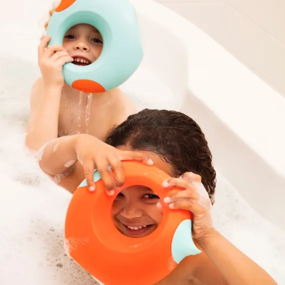 - Uporabljate jo lahko v kadi, doma, na plaži ali na vrtu. Dve različni strani podvojita zabavo za vaše otroke, saj lahko vodo pršijo ali nalivajo, hkrati pa spodbujajo fine motorične sposobnosti.