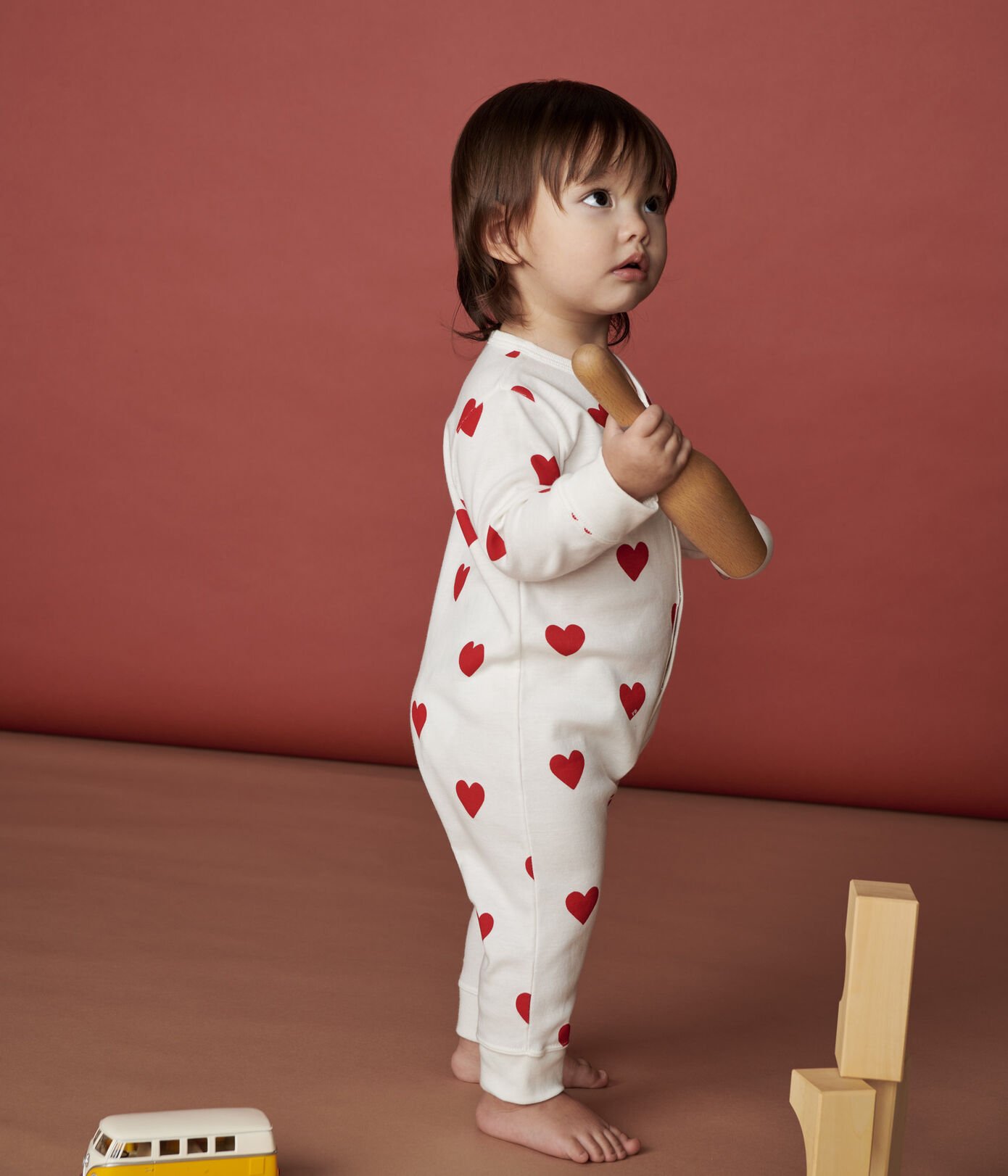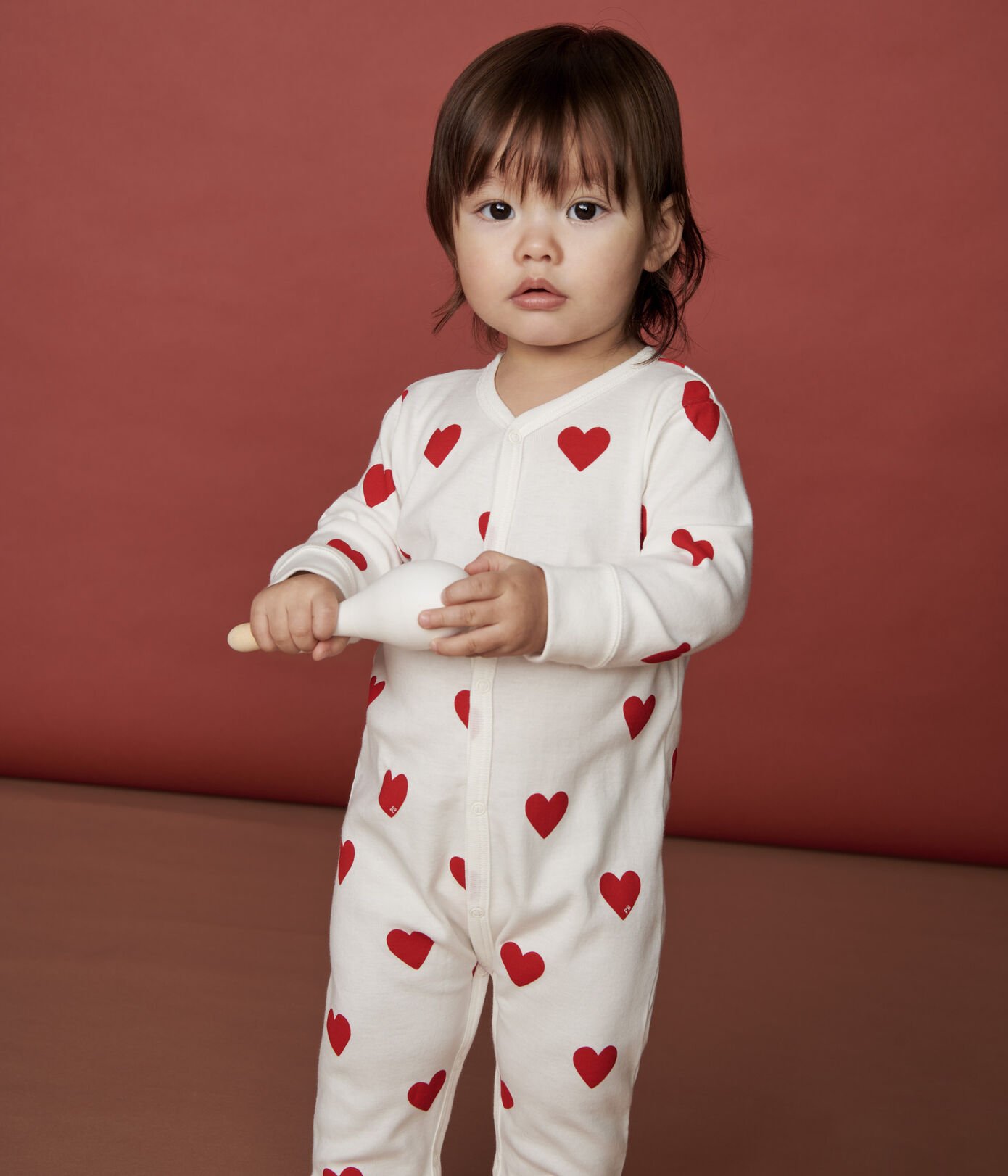 • Pižama brez stopalk s srčki iz ikonične rebraste pletenine Petit Bateau.