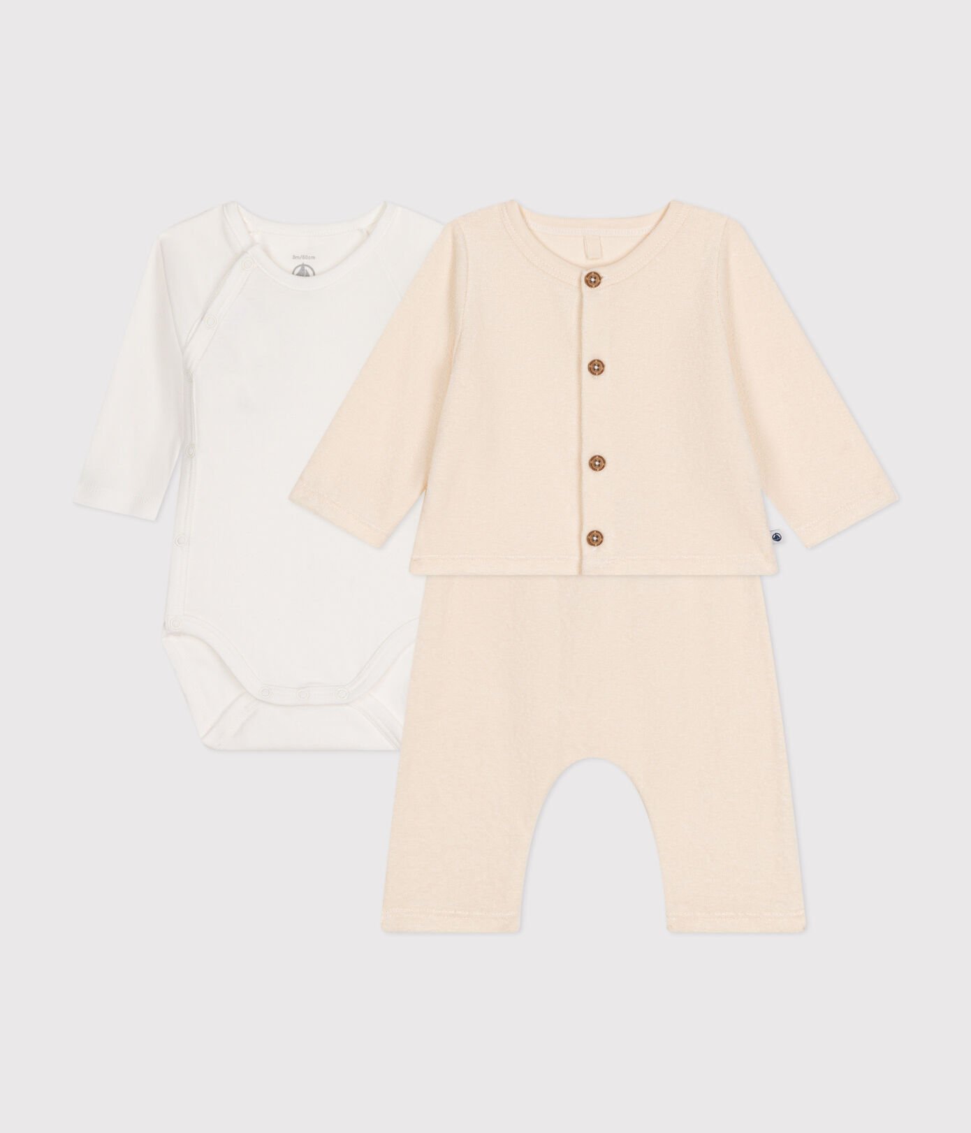 - Prekrivni bodi iz ikonične rebraste pletenine Petit Bateau. Zasnova ovoja je idealna za majhne malčke, saj vam oblačil ni treba vleči čez njihovo glavo.