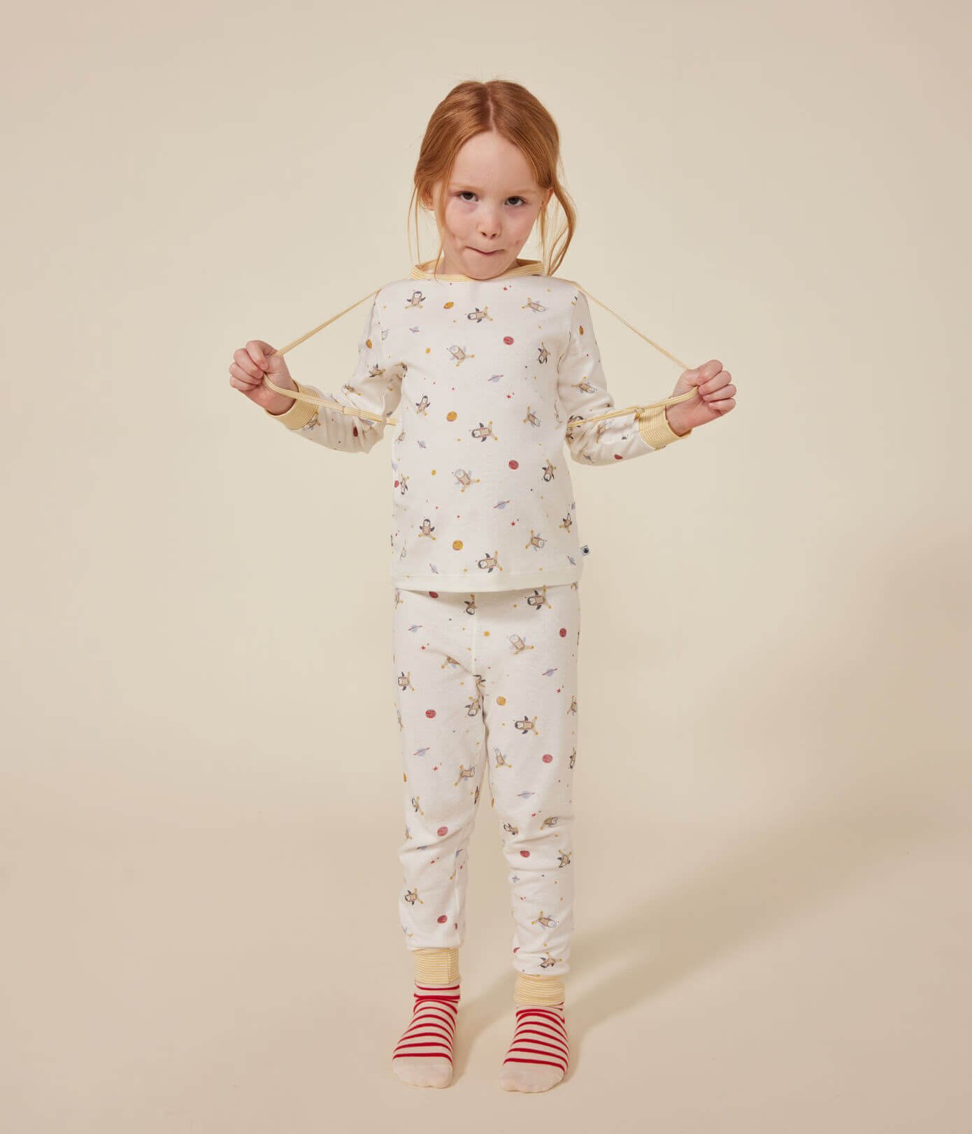- Pižama je izdelana iz potiskane rebraste pletenine.