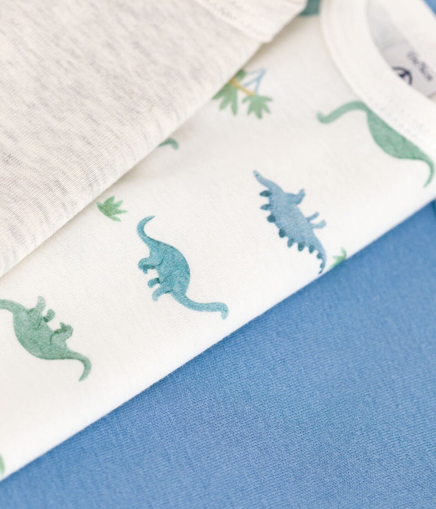 • 3 bodiji s kratkimi rokavi iz ikonične rebraste pletenine Petit Bateau.