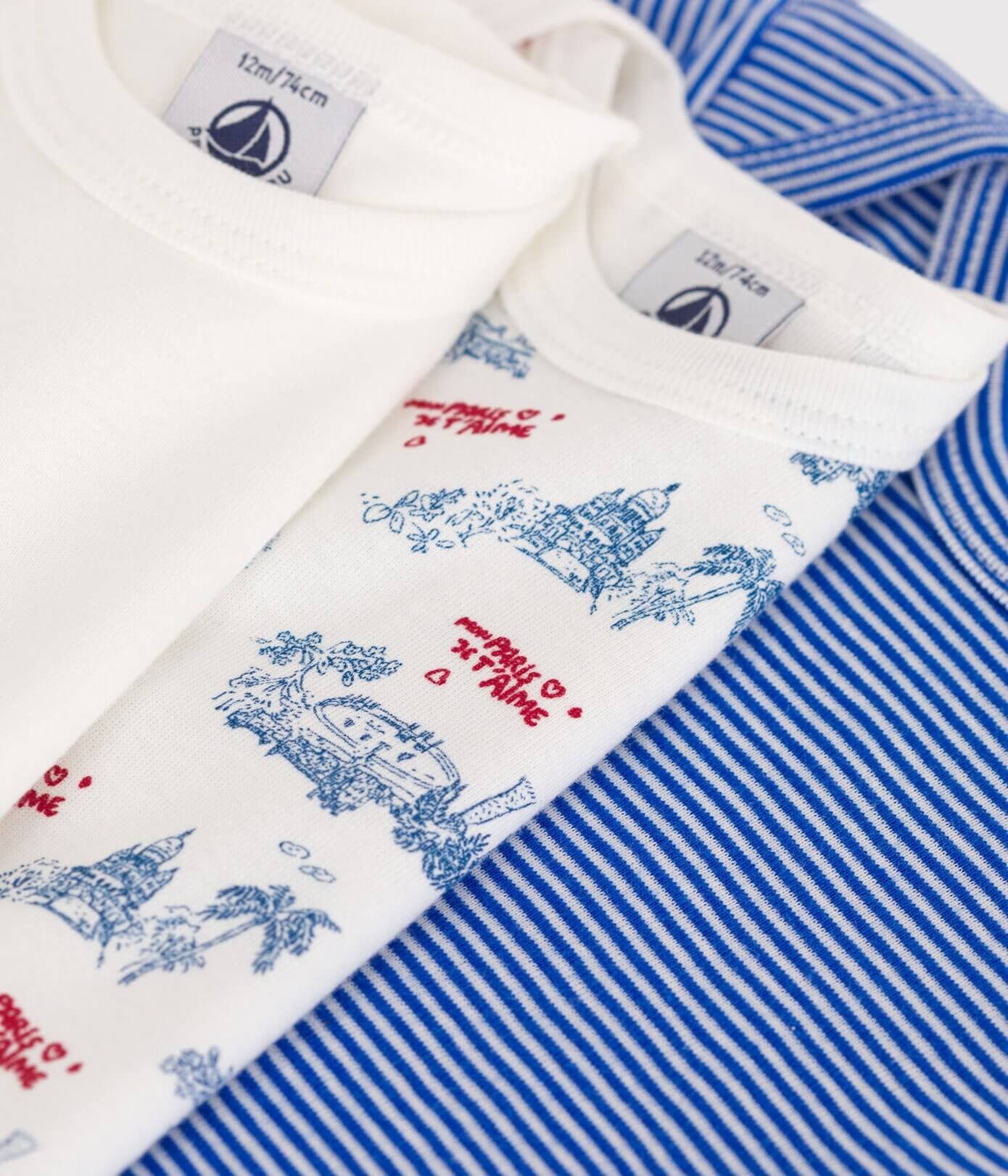 - 3 bodiji s kratkimi rokavi iz ikonične rebraste pletenine Petit Bateau.