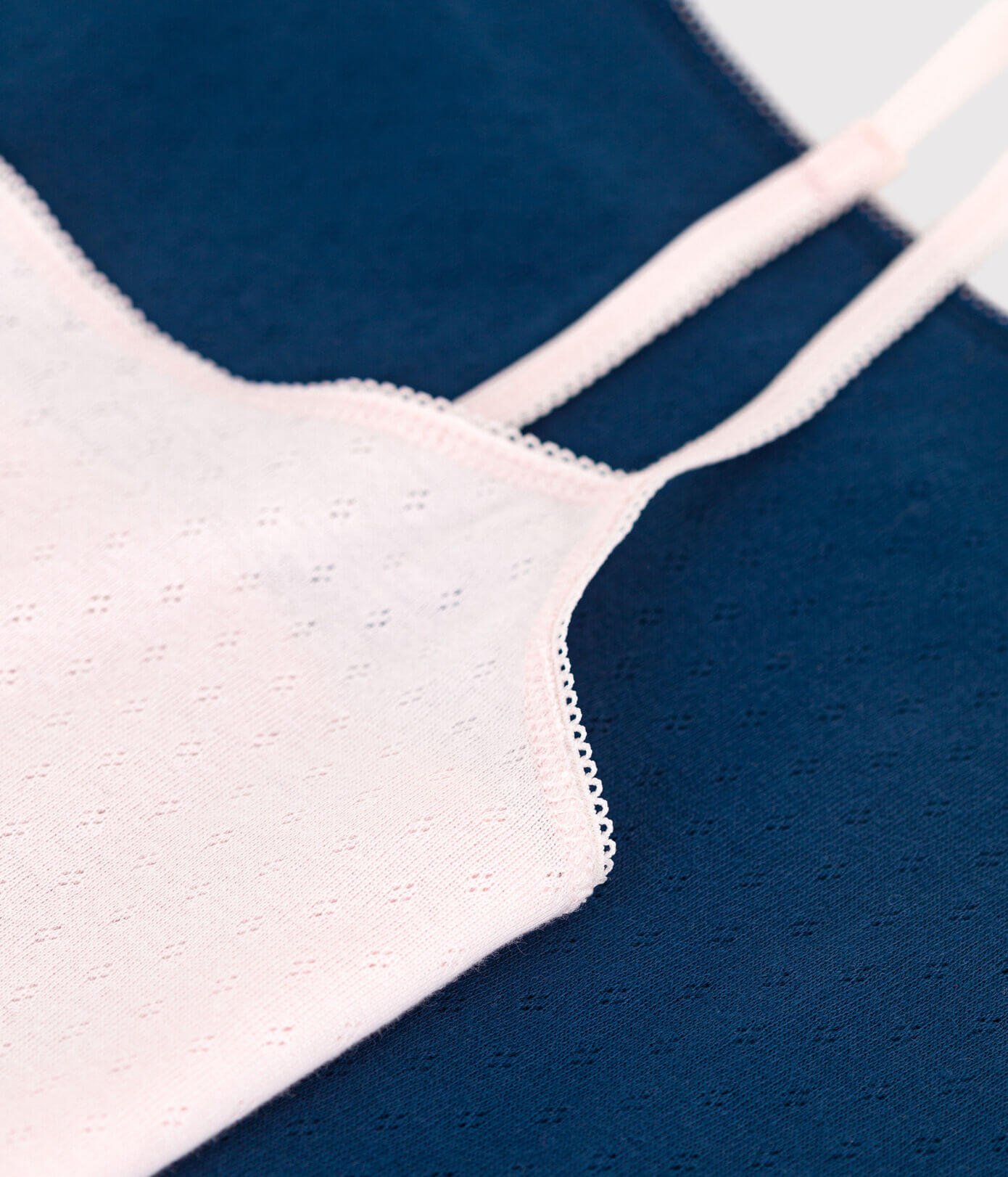 - Komplet dveh ženskih majic brez rokavov z naramnicami iz perforiranega bombaža.