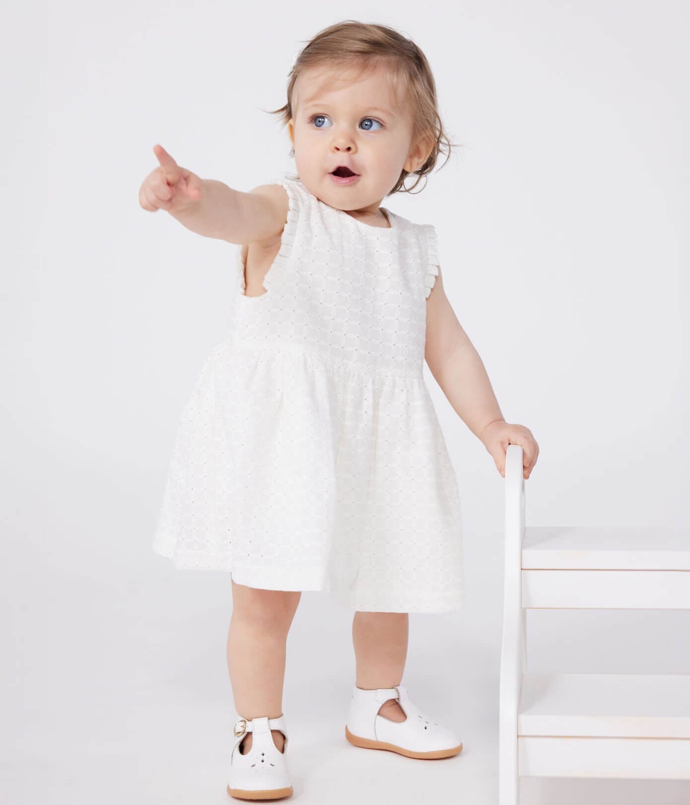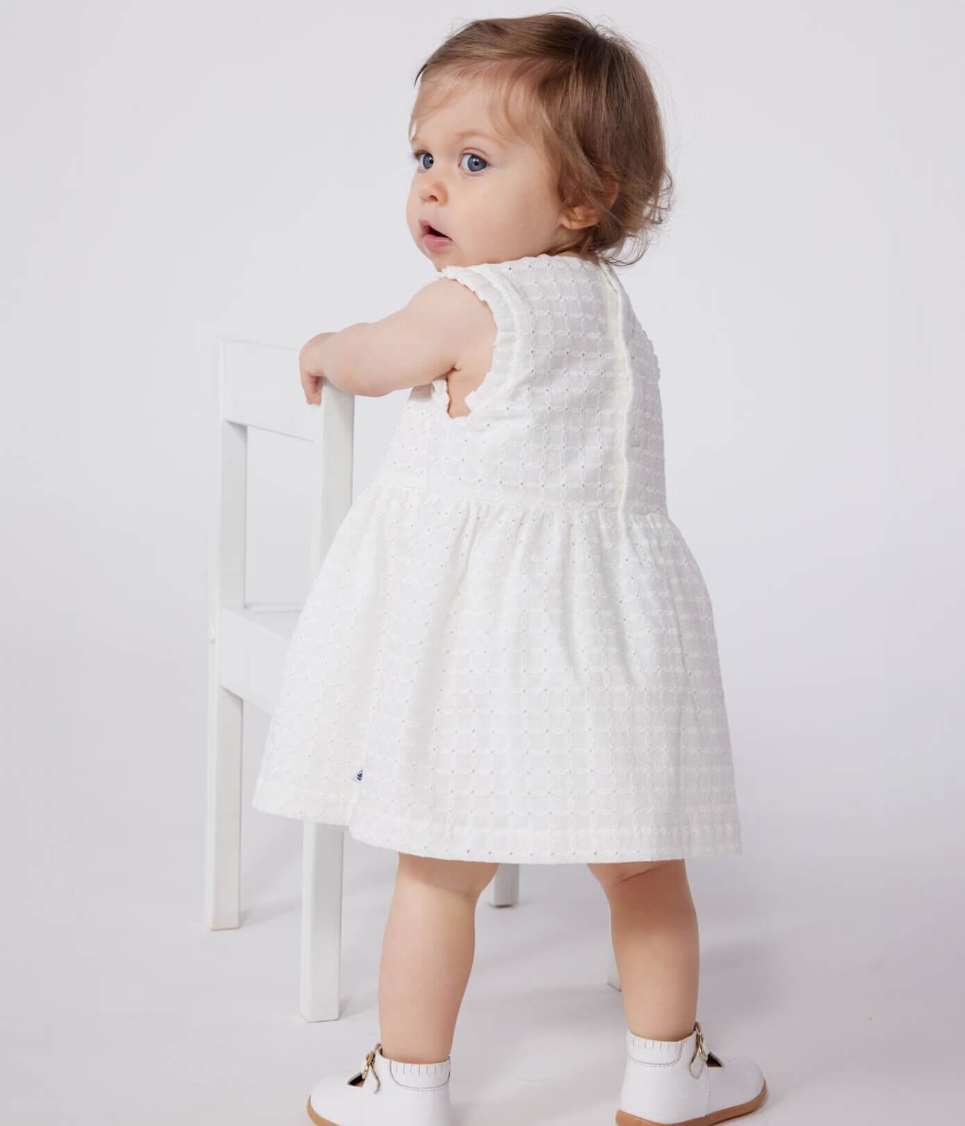 - Dekliška obleka za posebne priložnosti iz poplina, lahkega blaga, s cvetličnim motivom in prefinjenim vezenim videzom.