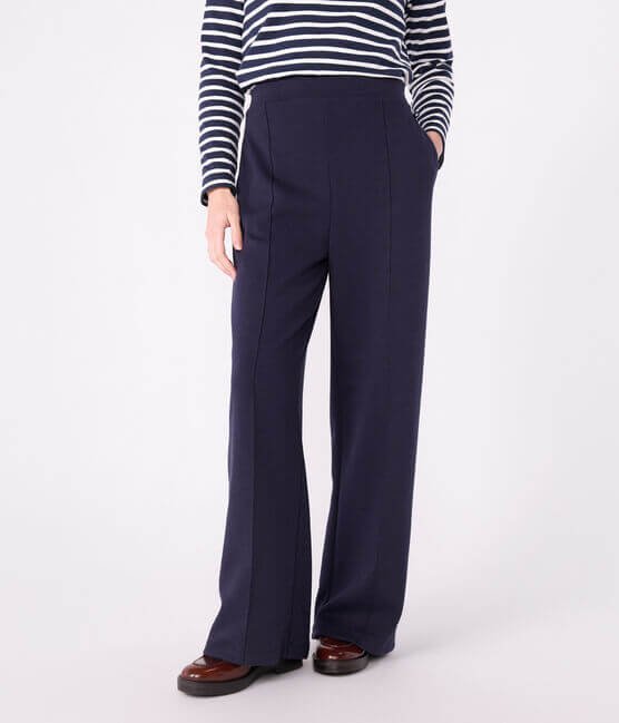- Ženske hlače iz dvojnega džersija, debele tkanine, ki dobro ohranja obliko.