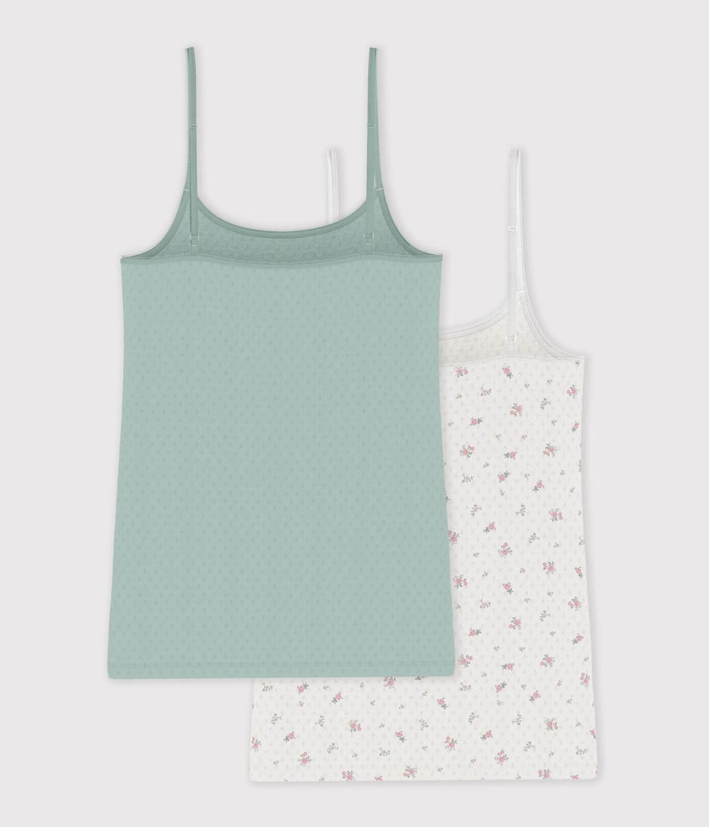 - Komplet dveh ženskih spodnjih majic z naramnicami, iz perforiranega bombaža.