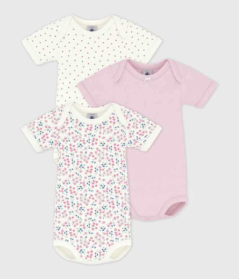 • 3 bodiji s kratkimi rokavi iz ikonične rebraste pletenine Petit Bateau.